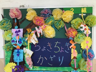 きょうしつのいりぐちにもぶらさげましたが,けいじばんもつくりました。