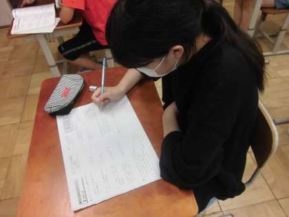 真剣に復習プリントに取り組んでいました。プリントが終わっても教科書の練習問題,
