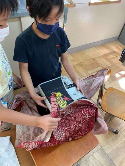 道徳の授業で,ふろしきを使って学習しました。