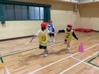 木にぶら下がった白い泡のかたまりを見てびっくりの子どもたち。