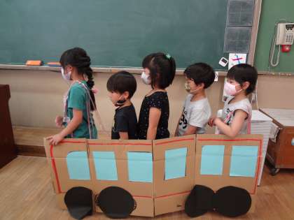 算数科「ふえたりへったり」の学習で,バスの乗り降りを通して,数が増えたり減ったりすることを学びました。