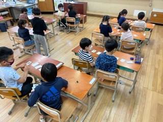 数図ブロックを使って考えたあと,数字カードを使って,9をつくろうゲームをしました。