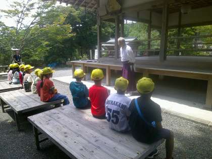 宮司さんから昔のくらしの様子やモリアオガエルの生態についてお話をしていただきました。