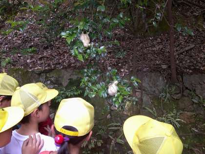 モリアオガエルの卵を見て、子どもたちは、命の尊さを感じていました。