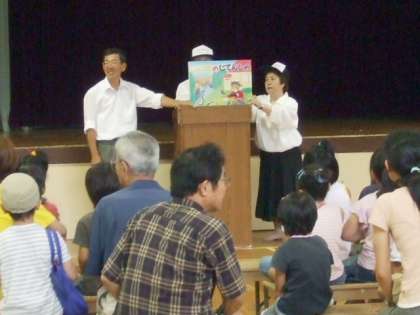 高雄交通安全推進委員会主催の交通安全教室が開かれました。右京警察署の方もたくさん来ていただきました。ドラえもんなどの着ぐるみの交通安全に気をつけようという劇をみんなで観た後、低学年は交通安全についての紙芝居。高学年はテストを受けました。その後運動場で全学年で自転車の実地テストを受けました。今日勉強したことを生かして交通安全に気をつけて夏休みを過ごそうと思いました。