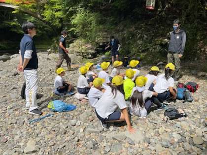 まずは、生き物の探し方のコツや、捕まえ方について教えてもらい、次に、安全上の注意について話をしました。