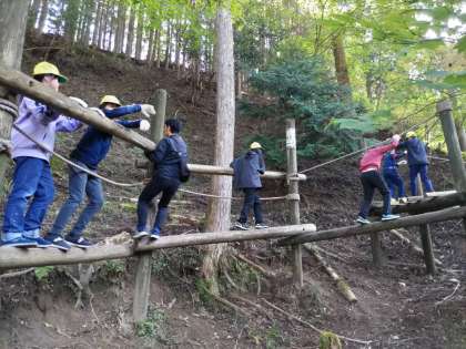 自然の中で、臆することなくどんどんアスレチックに挑戦しています。さすが高雄の子どもたちです。