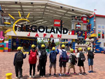 名古屋駅から在来線を乗り継ぎ、レゴランドに到着しました。みんな、元気いっぱいです!