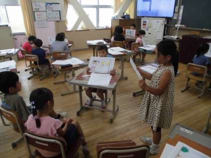 2年生は、国語の学習で、「今はないけれど、こんなものがあったらいいな。」と思うものを考えて、発表しました。グループで、司会を立てて、一人ずつ考えたものを話しました。聞いた人は、感想を伝えました。「そんなものがあったら、便利だな。」と思うものが、いろいろあり、子どもたちの想像力に驚かされました。
