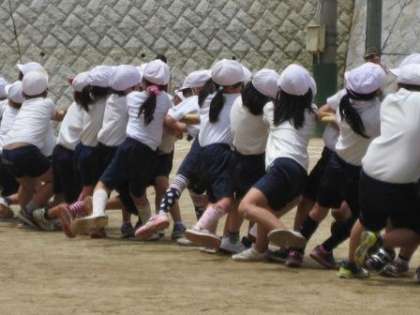 待ちに待った運動会。すでに午前中の競技が終わりましたが,競技・演技・各係が奮闘しています。