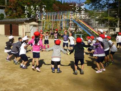 10月26日のことですが,運動場に出て,実際に「くじらぐも」の物語を自分たちで演じようと張り切って出ました。