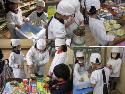 一年生も4月のときから思うと,てきぱきと給食の準備ができるようになりました。