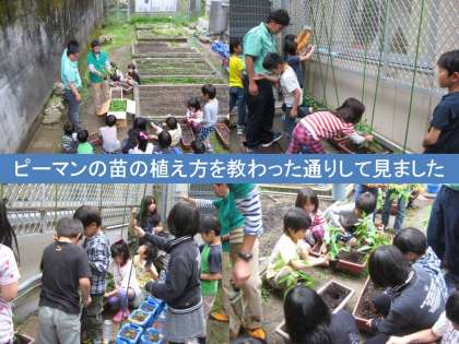 わざわざぼくたちのために土佐から飛行機にのってやってきていただきありがとうございました。と,子どもたちからお礼のあいさつ,あいさつのあと,廊下に出てさよならの握手をしました。ピーマン,元気に育ちますように。