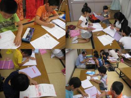 集まった子供たち,楽しく学習する子もいれば,問題に真剣に立ち向かう子もいました。