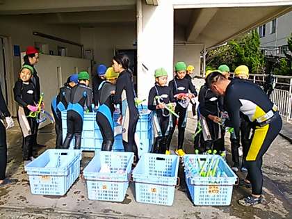 後半にスノーケリングをしたグループも活動がおわり,あとかたづけをして,着替えて,さあつぎの活動へ。