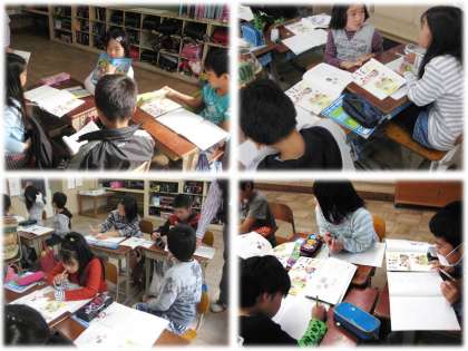 主語と述語を理解して,短い文を意図してつくります。いつ,だれが,どこで,何をした。自分の考えや見たこと聞いたことを整理して書く練習です。そして,それが伝わるかどうか確かめるためにグループで確かめ合いました。