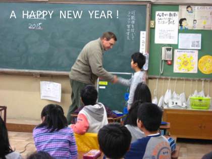1月はじめての英語活動。いつものように英語クイズから入り,最後に残った人はロバートさんと英会話であいさつをかわす特典があります。