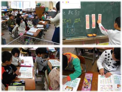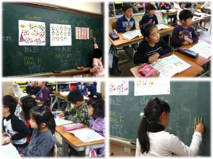 大人になったら,もう十進法ということも忘れて当たりまえに大きいかずを扱っていますが,基本はこの1年生でならう十進法です。繰り返し繰り返しの練習に,つい,姿勢もくずれがちになりますが,子どもたちの心の底まで理解するまで練習しています。