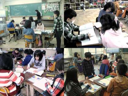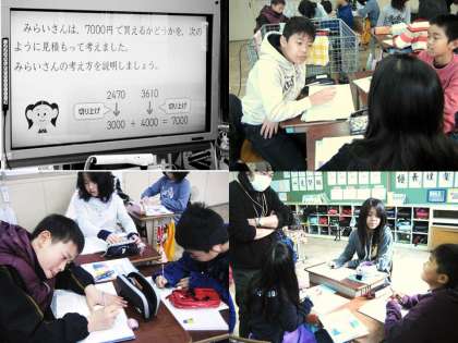 5年生の子どもたち,グループになって,自分の考えを説明し合っていました。