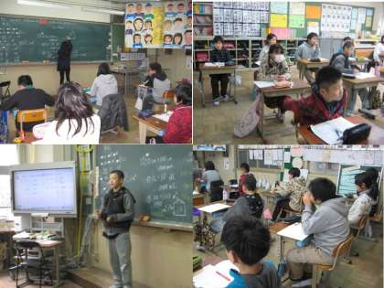考えが途中でも,どのように説明するか,説明のしかたを考えるのも学習です。黒板の前に出てみんなに向かって自分の考えを説明する子たちでした。