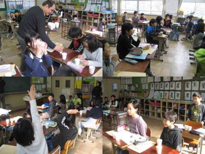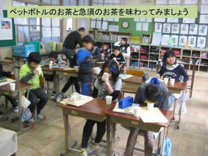宇治市の学習を始めて2時間目です。昨日放課後,4年生担任の先生が急須にお茶を入れて教職員にふるまっていましたら,今日のこの日の教材研究だったようです。子どもたちは出されたお茶を飲み分けて,そこから率直な意見を出し合いました。でも,本題はこれからです。
