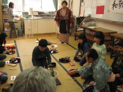 お茶クラブの見学に入ったら,いきなり「お茶をたてましょか」と,5年生の子に声をかけられました。「いえいえ」と言っていたのに,つい「ありがとう」と,応え,お点前をいただきました。お茶のことはわかりません。作法にはじまり作法に終わるのか,高学年の子に注意を受ける場面もありました。作法を知ることは人と人とのコミュニケーションやマナーを考える上で将来にも役に立ってくるでしょう。