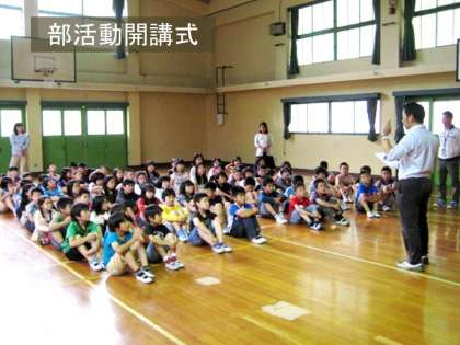 給食が終わったお昼休み,3年生以上で希望者を講堂に集め,部活動の開講式を開きました。サッカー部,バレー部,陸上部,琴部,お茶部に分かれますが,時間があれば2つの部活を掛け持ちしても大丈夫です。