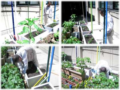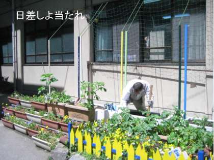 そこで,プランターを少しでも校舎から離して隠れていく日差しに長い時間当たるようにするための棚を作ってもらっています。