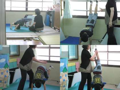 秋の運動会に備えて,高学年になったので少しずつ一人技の練習を始めました。2組の教室には畳みが敷いてある場所があるのでそこで先生がいるときにします。気分転換にもなります。