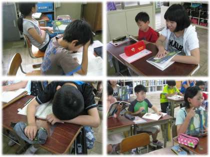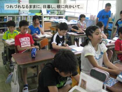 先生に7分間,暗唱しましょうと言われて,子どもたちは覚えようとして一生懸命口にしていました。