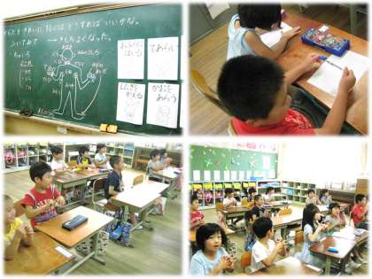 1年生は「きれいなからだ」を学習し身体を清潔にすることの大切さに気付き,手洗いの練習などしました。