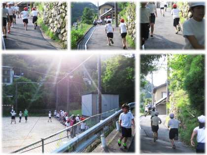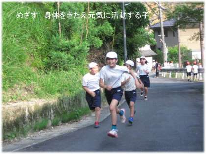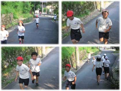 秋には右京北支部駅伝大会がありますが,それに向けてなんとか練習も重ねておかなければなりません。陸上クラブを結成し,3年生から6年生まで多くの子たちが入ってきました。講堂ではこの日はサッカークラブがミニサッカーゲームをして汗を流していました。梅雨に入りましたが,今日は絶好の運動日和。子どもたちは162号線を渡って中学校跡地へ行き,そこから車が通らない坂道を走りました。金曜日は平岡八幡宮の参道を走らせてもらっています。先生も3人体制で指導・補助をしています。