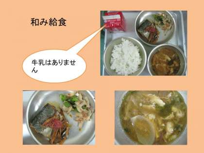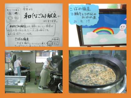 今日の給食ははじめての和(なごみ)献立でした。平成25年12月に「和食」がユネスコの世界無形文化遺産に登録されたことを受け,京都市の小学校で和食のよさを伝えるために月に一度「和献立」を提供することになったものです。