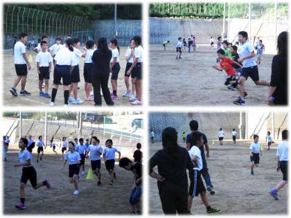 先週まで校区の山道を走っていましたが,今日から運動場でも走り始めました。11月6日の右京北支部駅伝大会に目標を定めて走っています。