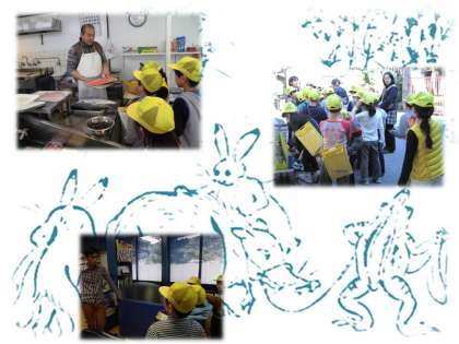 魚を売っているお店では,子どもたちの前で魚をさばくのを見せていただき,子どもたちの関心を集めていました。すぐ近所にはお米屋さんや酒屋さんもあります。どれも,この町の人々の毎日の食料品を用意してくれています。