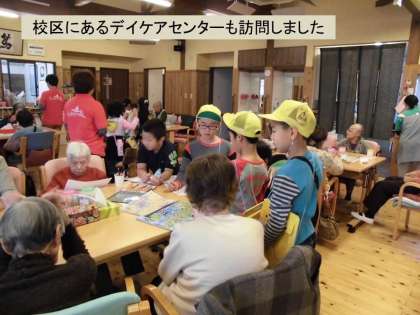 奥殿川に沿って,デイケアセンターがあります。そこにもたんけんに寄せてもらいました。ここでは,所長さんや職員の方にいろいろとセンターの中を見せてもらったり説明してもらったりしました。