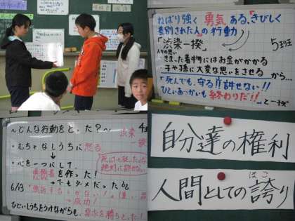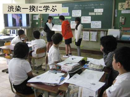 渋染一揆を学習した子どもたちは,人間としての権利と誇りをうばわれる人たちが命をかけて嘆願書を出した勇気について感想を持ちました。