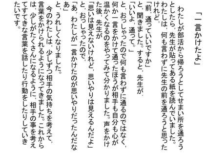勇気をだして「前を通っていいですか」と声をかけられたことも素晴らしいし,その一言に先生が言われた言葉も素晴らしいですね。語り口調が想像できます。