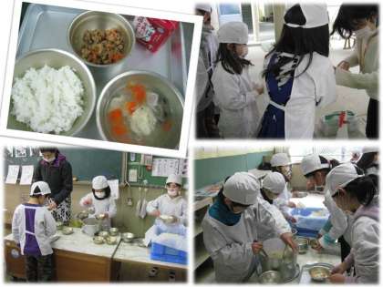毎日,登校時間,一緒に登校してくる低学年と高学年。遊ぶときにも小さい子が大きい子を追いかけて遊んでいる光景を見ます。それでも給食の時間には,かってによその学年に入って給食することはできませんから,今日は給食週間で特別に交流給食の日としました。