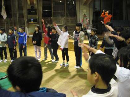 キャンドルファイアーを囲んで,楽しい歌やゲームでひとときをすごしました。