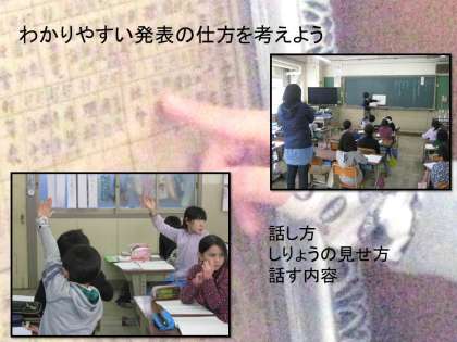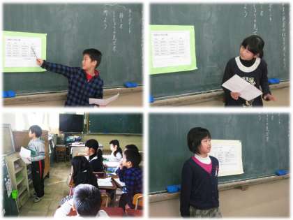 そんな緊張の中で,内容を考えて整理して,指さしながらみんなの方を向いて発表することにチャレンジしていました。