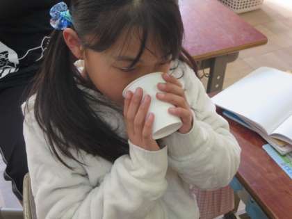 一番最初に用意したのが,お茶の飲み比べです。お茶をじっくり味わうことによって,お茶はいったいどうやって作られているのか,作り方のコツはあるのかなどに子どもたちの目が向いていきました。さあ,どんなことを調べていくか楽しみです。