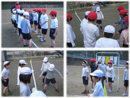 5校時の体育の時間は,数人ずつに分かれてボールけりゲームをしました。チームで動くことがまだできないで,ボールをみんなで追いかけまわるので,パスという動きがありません。その間に,ドリブルの上手な子が一人でボールをけっていき,ゴールします。その繰り返しです。それでも外で元気に動き回るのが楽しい1年生です。