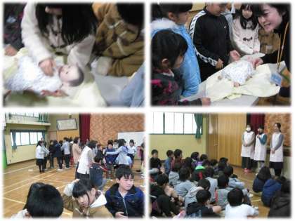 赤ちゃんの人形だとわかっているのにこの学習の中で子どもたちは「いのち」にふれる表情を赤ちゃんにして見せました。
