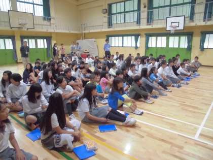 10月4日に行われる高雄中学校の学校祭で小中合同合唱を披露します。小学校の5・6年生と中学生の合唱です。中学生の男性パートの響きが小学生の合唱ではなかなか出ません。中学生の声と小学生の声を響かせ素敵な合唱ができるよう練習を重ねていきます。