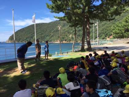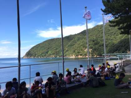 無事に若狭湾青少年自然の家に到着しました。とてもきれいな海の様子を見ることができます。ご家庭で用意していただいたおべんとうも楽しく食べることが出来ました。