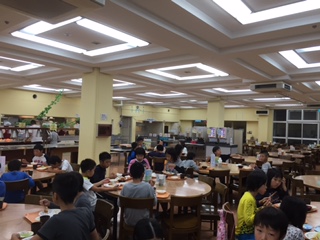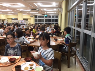 今日の活動を終え、全員元気に夕食を食べています。夕食後はナイトハイクです。