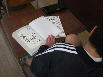 2年生は「わたしはおねえさん」という教材を使って,「自分とくらべながら」読む学習を進めています。単に教材を読み取ることに終わるのではなく,様々な読み物に親しみ,自分とくらべながらよむ力をつけていきたいと願っています。そこで,「わたしはおねえさん」の出展となっている「すみれちゃんシリーズ」を合わせて読むように働きかけました。読書タイムで読んでいる様子を見かけました。ご家庭で読書するときに,「すみれちゃんシリーズ読んでるの?」とお声かけいただくとありがたいです。