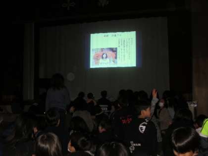 全校みんなで楽しめたのが,6年生クイズでした。一人一人の6年生の好きな言葉や特技,夢中になっていることなどをクイズ形式で出題していきます。高雄小学校の子ども達は,みんながみんなのことをよく知っています。6年生一人一人の個性をよくわかって,クイズにどんどん答えていきました。