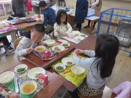 今日の献立には,サバの味噌煮が付きました。給食カレンダーには,この一年間で食べたお魚が記されていました。また,サバは,今年十回給食で食べたそうです。おはしも上手に使えるようになり,ちゃんと骨をとって食べていましたよ。